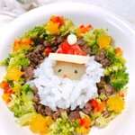 可愛いクリスマスご飯です♪だいたい茹でるだけなので簡単です。難しいポイントをひとつ上げるとするなら...黒ごまを置く時です☆笑