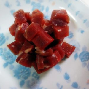 レタスのカレー炒め 冷蔵庫の余り物でササッと♪ 食べごたえバッチリなボリューム満点メニューです(꘎ꔷ◡ꔷ꘎ ) 材料鹿肉○椎茸○赤パプリカ○ブロッコリー○もやしごま油レタスターメリックごく少量さくらかいわれ 手順 鹿肉を食べやすい大きさに切る ○をごま油で炒める 鹿肉を加える レタスとターメリックを加える お皿に盛り付け、さくらかいわれを添えたら出来上がり☆ 解説ブロッコリーに多く含まれているビタミンC。茹でてもレモン1個分よりも多いんですよ〜( *´艸`*)犬は体内でビタミンCを合成することができると言われています。でも、病気などで足りなくなってしまうことも‥そんな時はブロッコリーの力を借りてみるのもいいですね(*^_^*)オススメの犬レシピ 免疫力を上げる食材レシピ免疫力UPに期待されている食材を使ったレシピです。身近な食材ばかりなので、ぜひ日頃から取り入れてみてください(*^^*)...続きを読む 猪肉と鰯ぶしのお茶漬け滋養たっぷりで高たんぱく低カロリー、血中コレステロールを抑える不飽和脂肪酸が多いと言われている猪肉を使ったメニューです☺茹で汁を使う事でお肉から出たうま味も残さずあげましょう..続きを読む ここまで分かる! 愛犬 愛猫の腸内細菌解析このレシピを読んだ人にオススメしたい商品 小型犬や猫ちゃんに嬉しい! 鹿肉切り落とし100g x 5Pショップページを見るレシピキーワード Forema Nature Xmas(クリスマス) ひな祭り ウェットフード カワイイ グリーントライプ コラーゲン ドリア ニジマス ハロウィン ハンバーグ バレンタイン パスタ ファスティング レバー 乾燥対策 二色丼 内臓 初心者 猪タン 猪ハツ 猪ヒレ肉 猪レバー 猪大腿骨 猪皮 猪肉 猪肉ミンチ 猪肉切り落とし 猪肉骨ミックス 皮 糠 骨 骨付き 鹿アキレス腱 鹿チョップ 鹿ハツ 鹿マメ(腎臓) 鹿ミンチ 鹿レバー 鹿肉 鹿肉ウェットフード 鹿肉ダイスカット 鹿肉パラパラミンチ 鹿肉ミンチ 鹿肉切り落とし