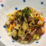 材料: ◉スイスチャード ◉しめじ ◉山茶茸 ◉オクラ ◉もやし ◉赤パプリカ △そうめん ★鹿レバー おからパウダー ビーポーレン