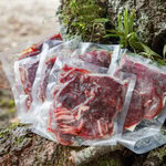 野菜に火が通ったら鹿肉を入れる。