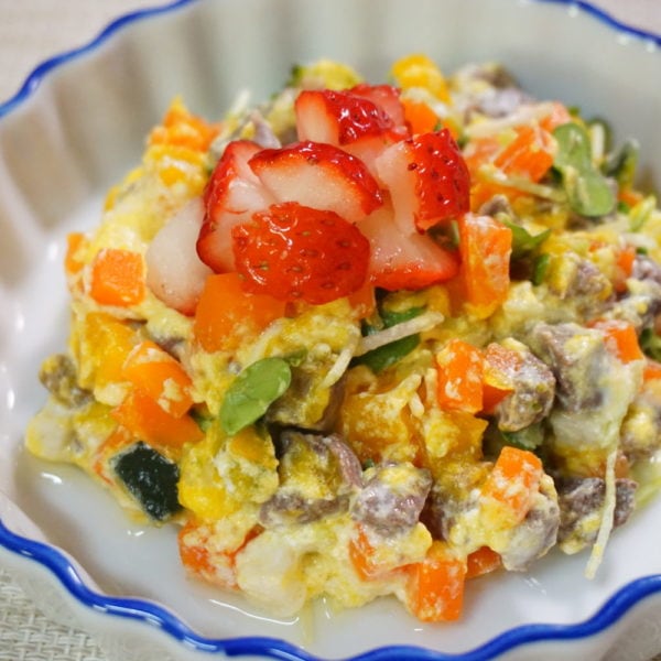 お皿に盛り付け、苺を添えたら出来上がり☆