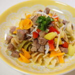 お魚もお肉ものせた、ワンチャンにも豪華なちらし寿司です(o^^o)今回は生のサーモンですが、加熱したサーモンを使えば行楽シーズンのおべんにも♪